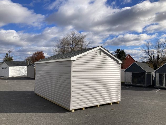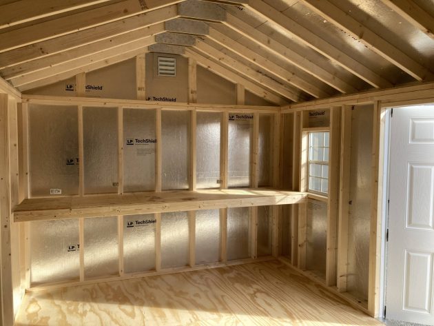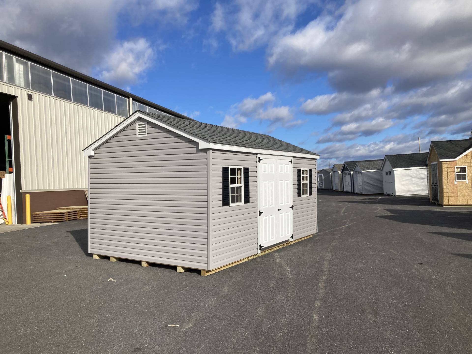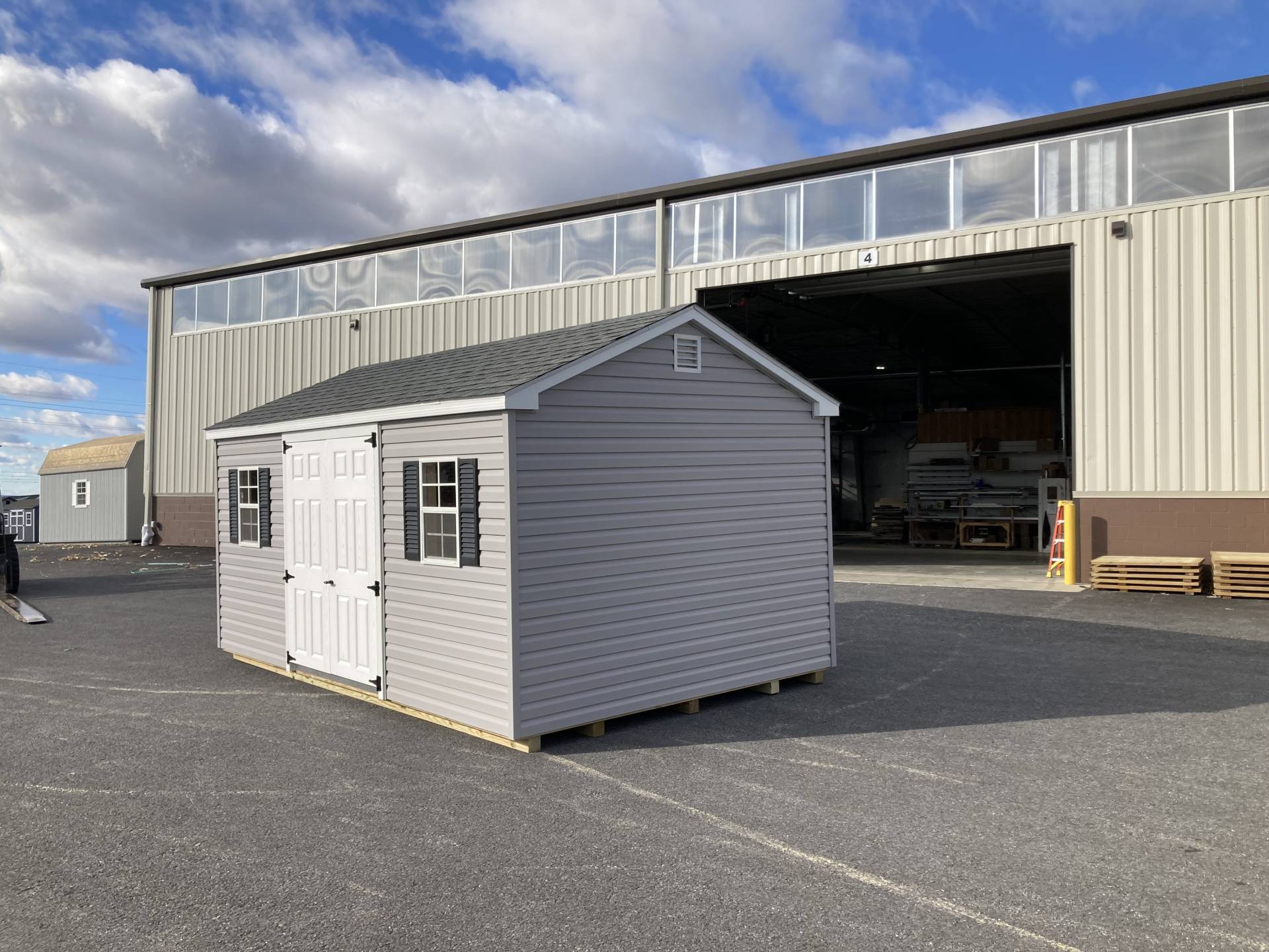Upgrades: 5' double fiberglass doors, 18x27 windows w/ black shutters, 2x10 shelf
