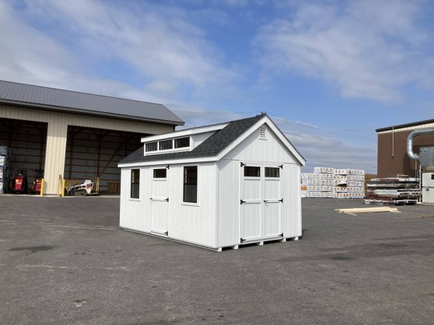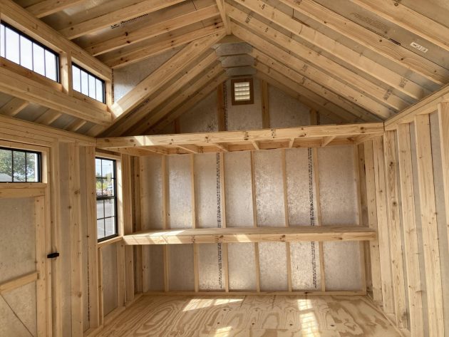 Upgrades: 54'' double doors, 34'' single door, (2) 24x36 windows, 8' transom dormer, Black windows, 4x10 loft, 2x10 shelf
