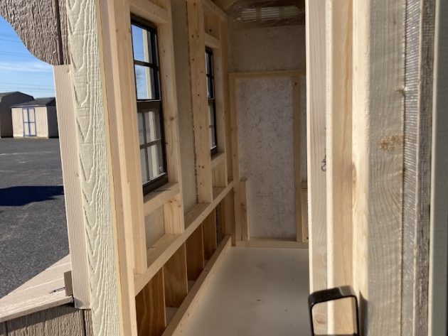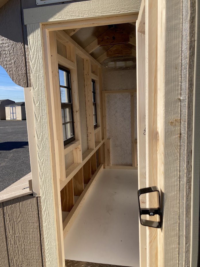 Upgrades: Entry door, 12x12 chicken door w/ ramp, (6) nesting boxes, 14x21 windows, ridge vent, (2) roosts, easy clean floor,