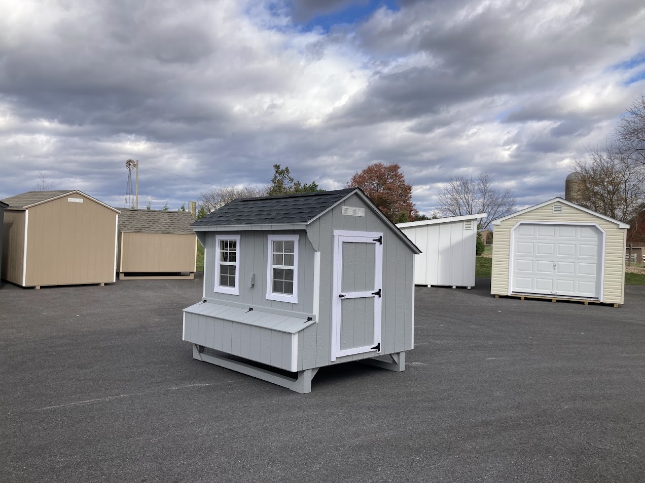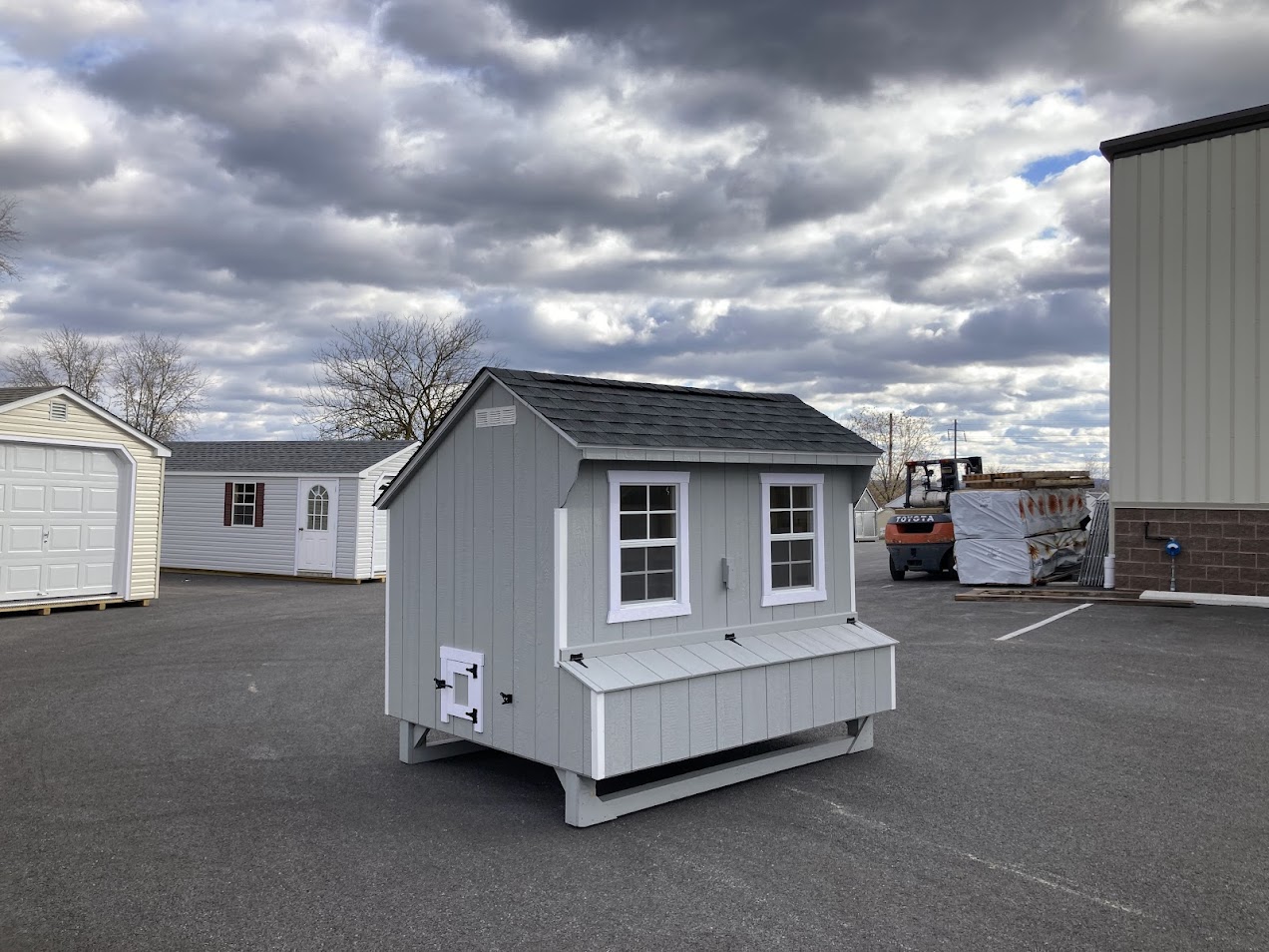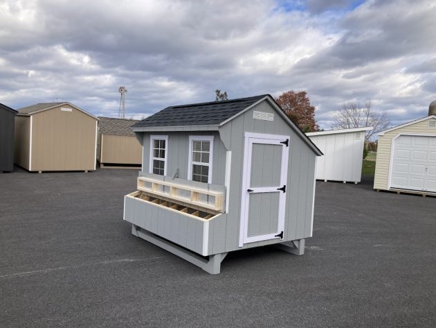 Upgrades: entry door, 12x12 chicken door, (2) 18x27 windows, (8) nesting boxes, (2) roosts, easy clean floor