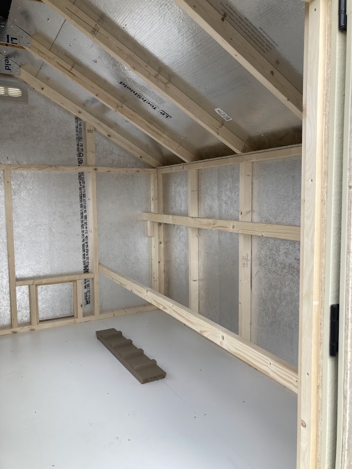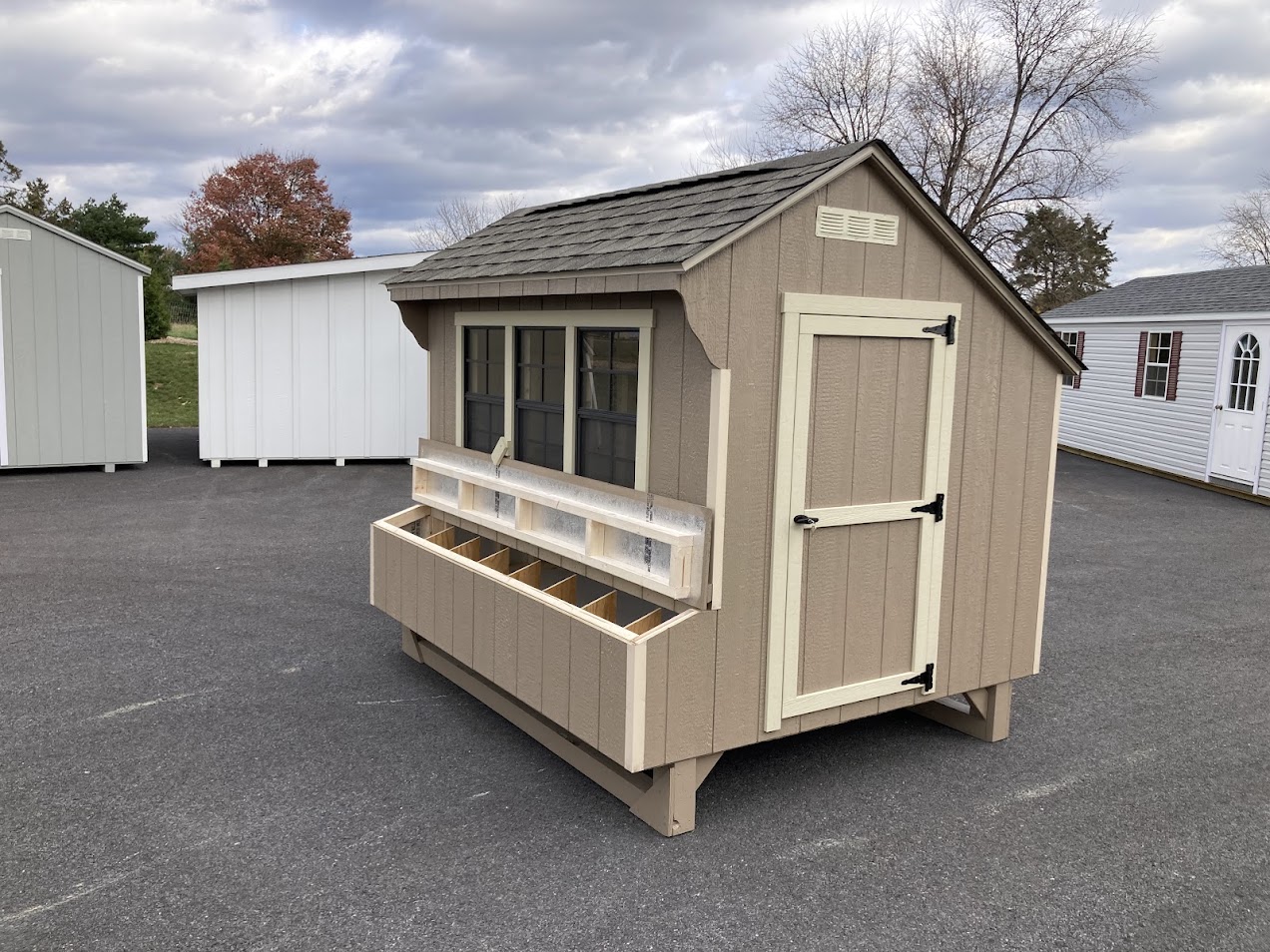 Upgrades: entry door, 12x12 chicken door, (3) 18x27 windows, (8) nesting boxes, (2) roosts, easy clean floor