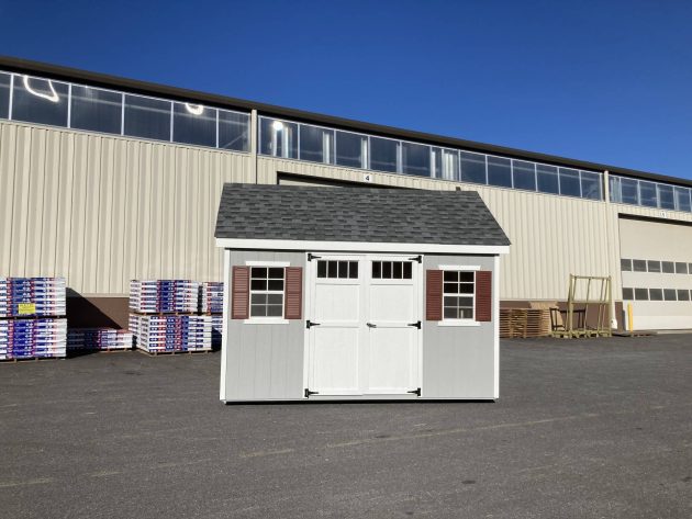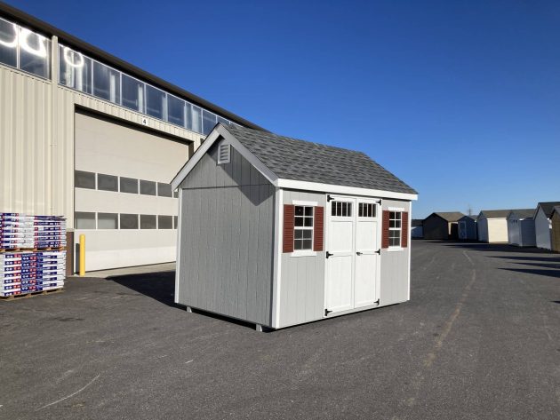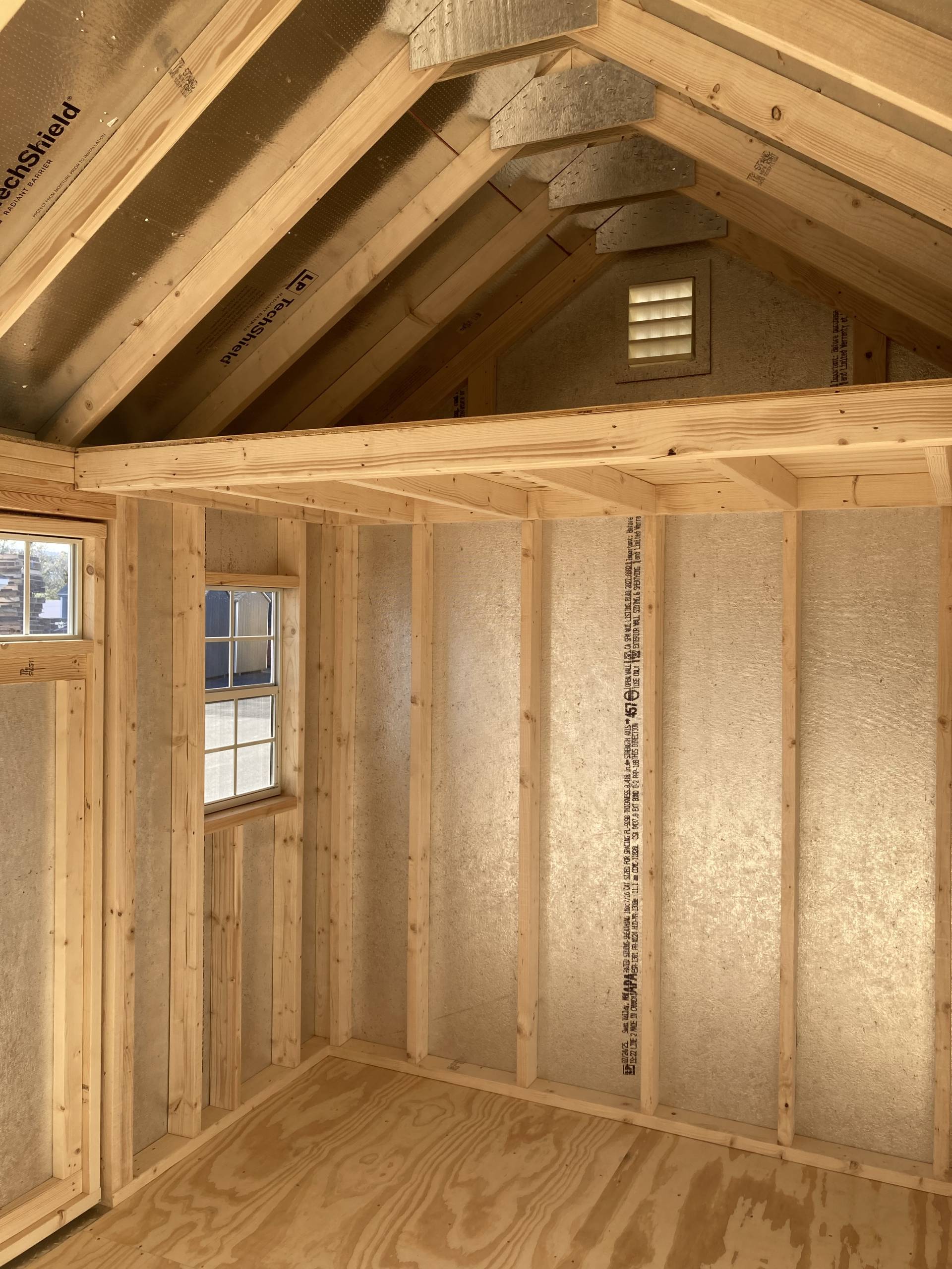 Upgrades: 54'' double doors, 18x27 windows with red shutters, 4x8 loft