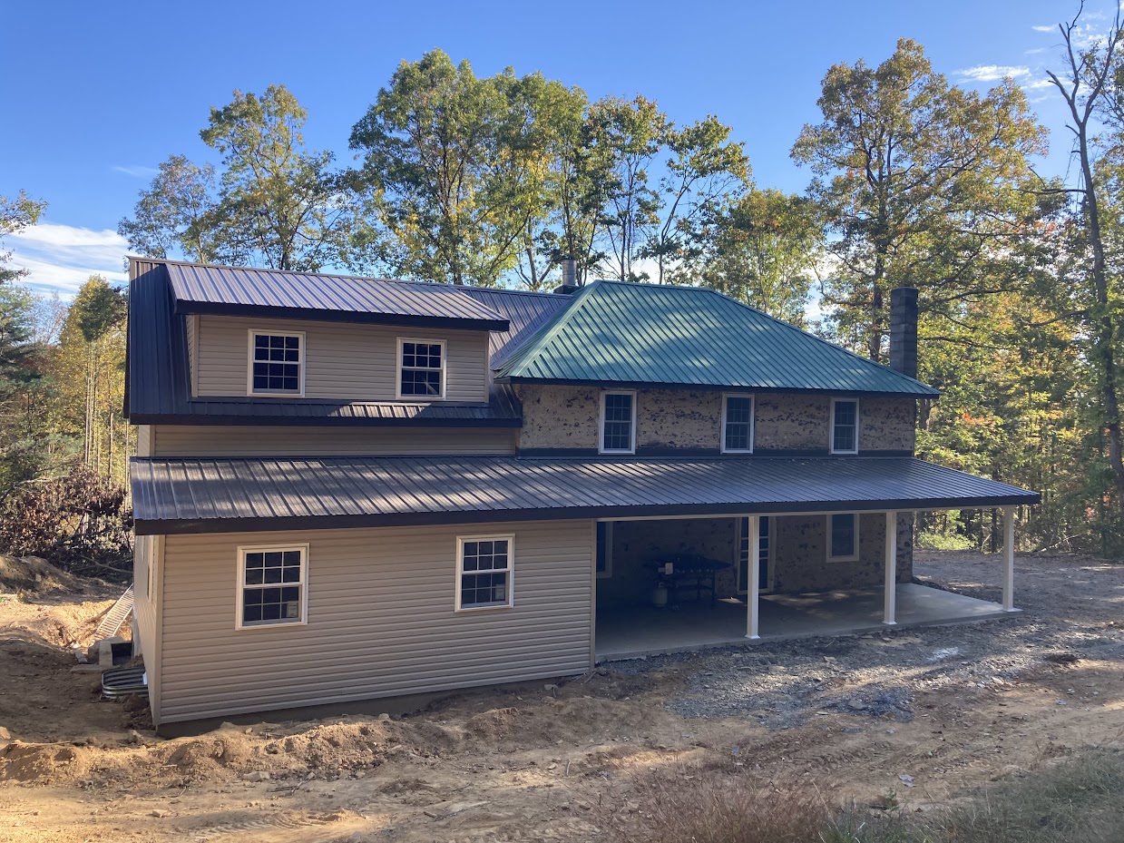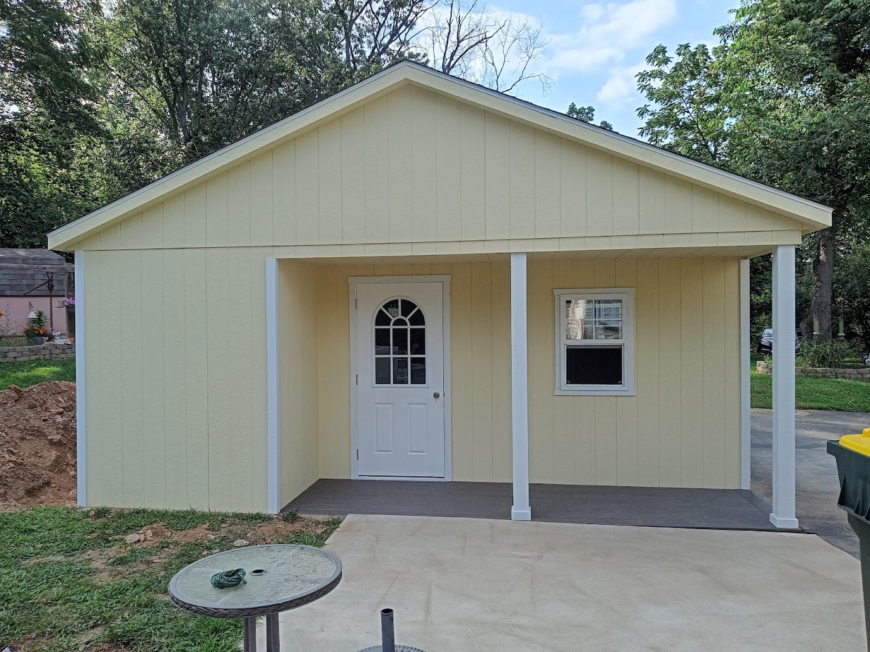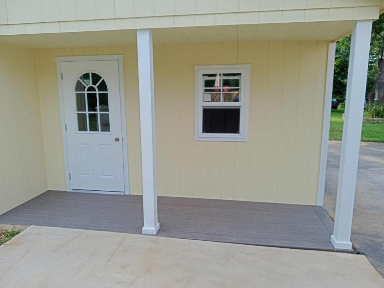 Shown in Iron-Ore Painted LP Smart siding, White trim, Black Metal and clear panel roof.