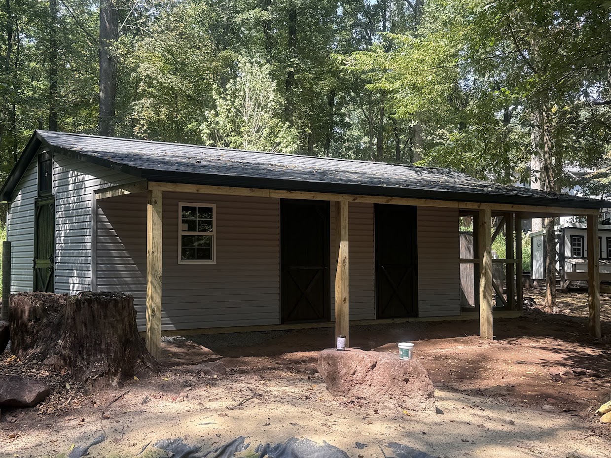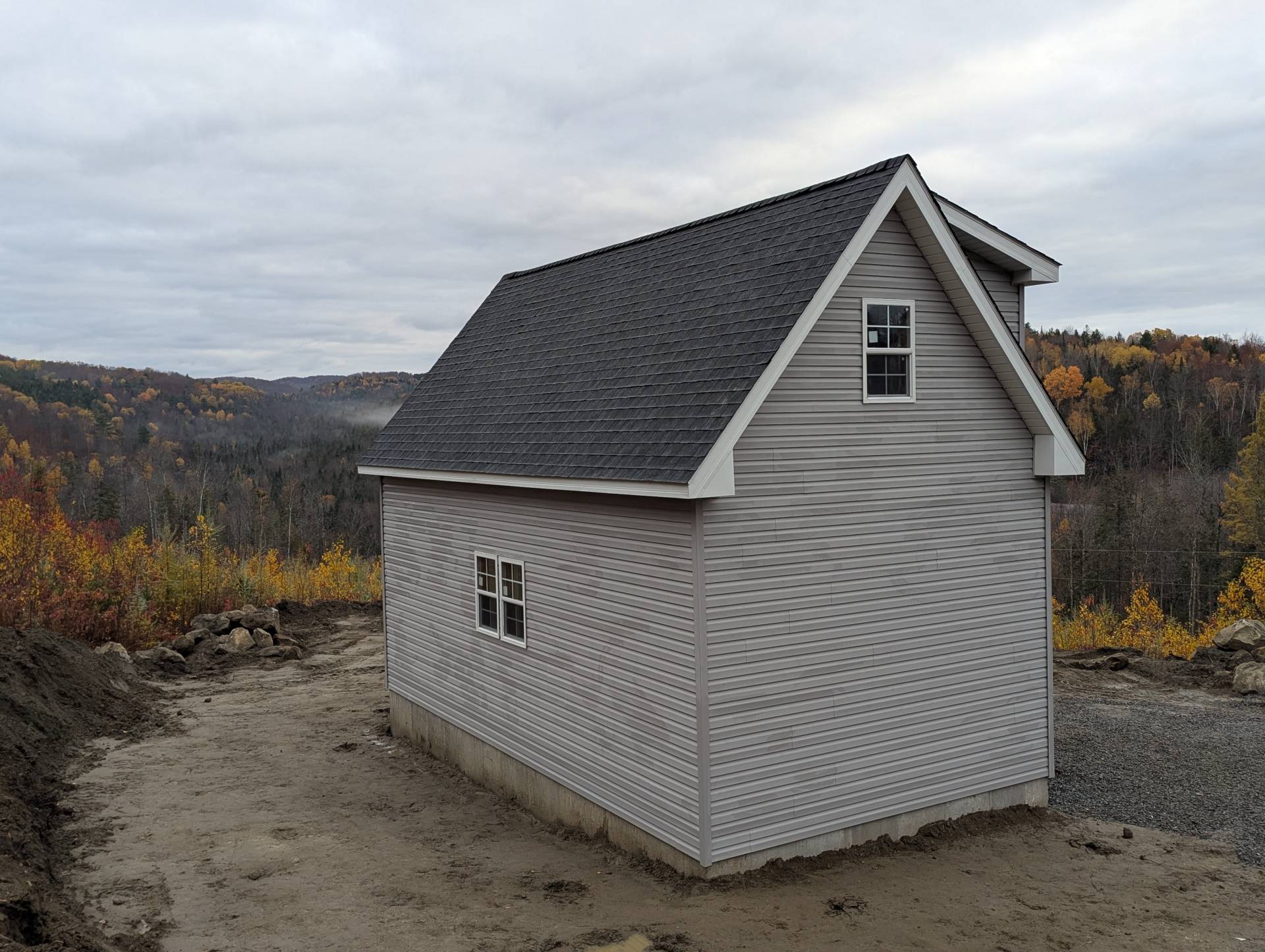 Completed with a 2ft pent roof, 10×12 deck, D4DL vinyl siding, and Architectural shingles