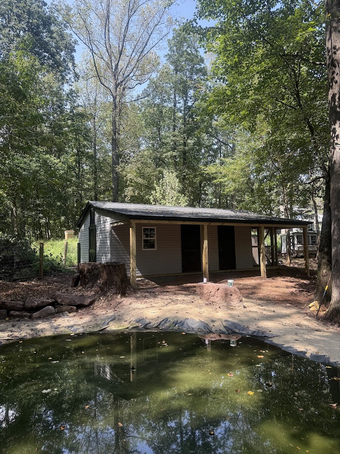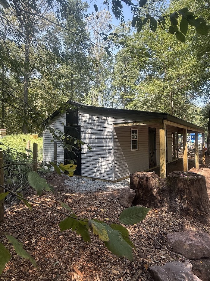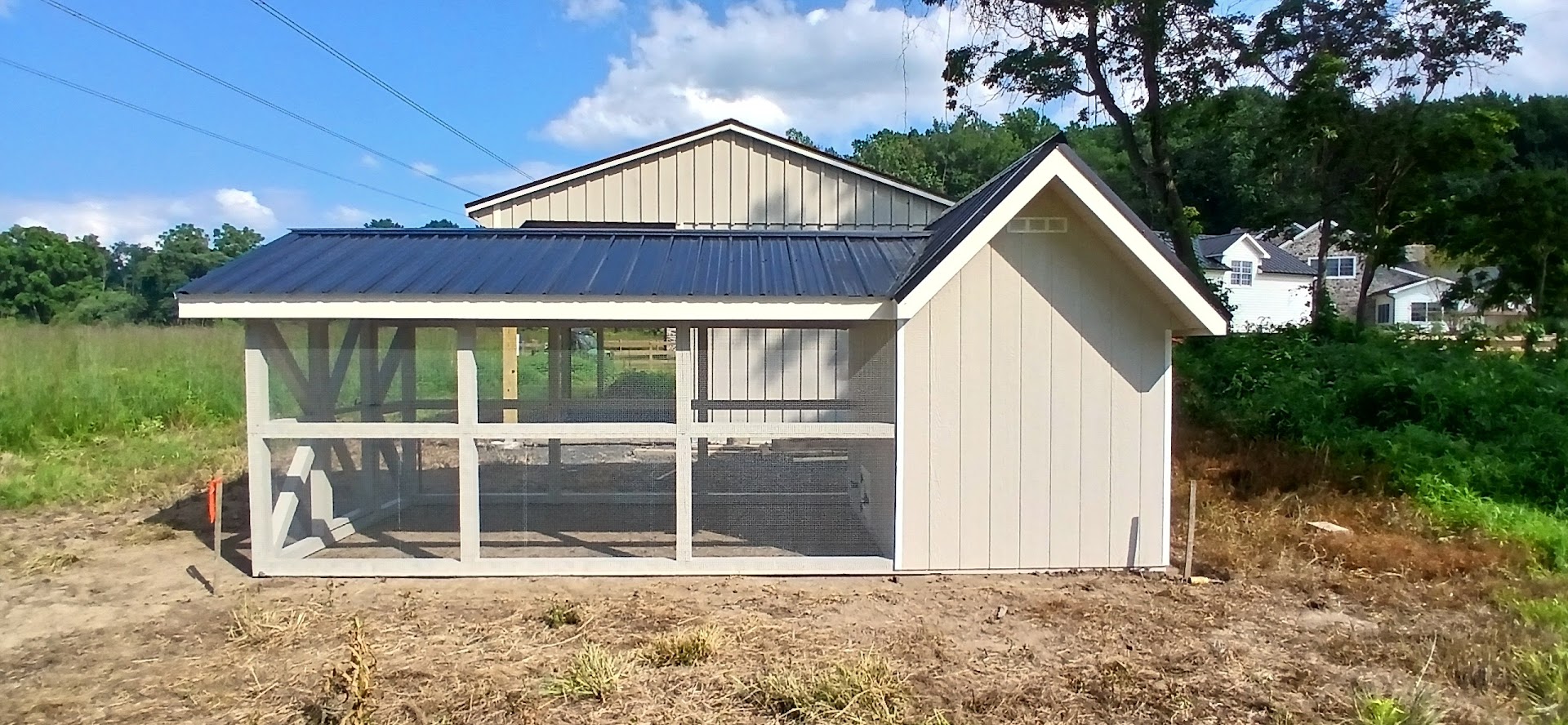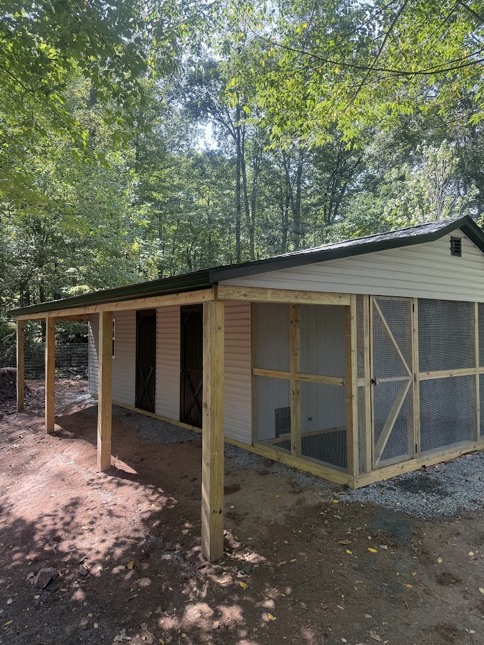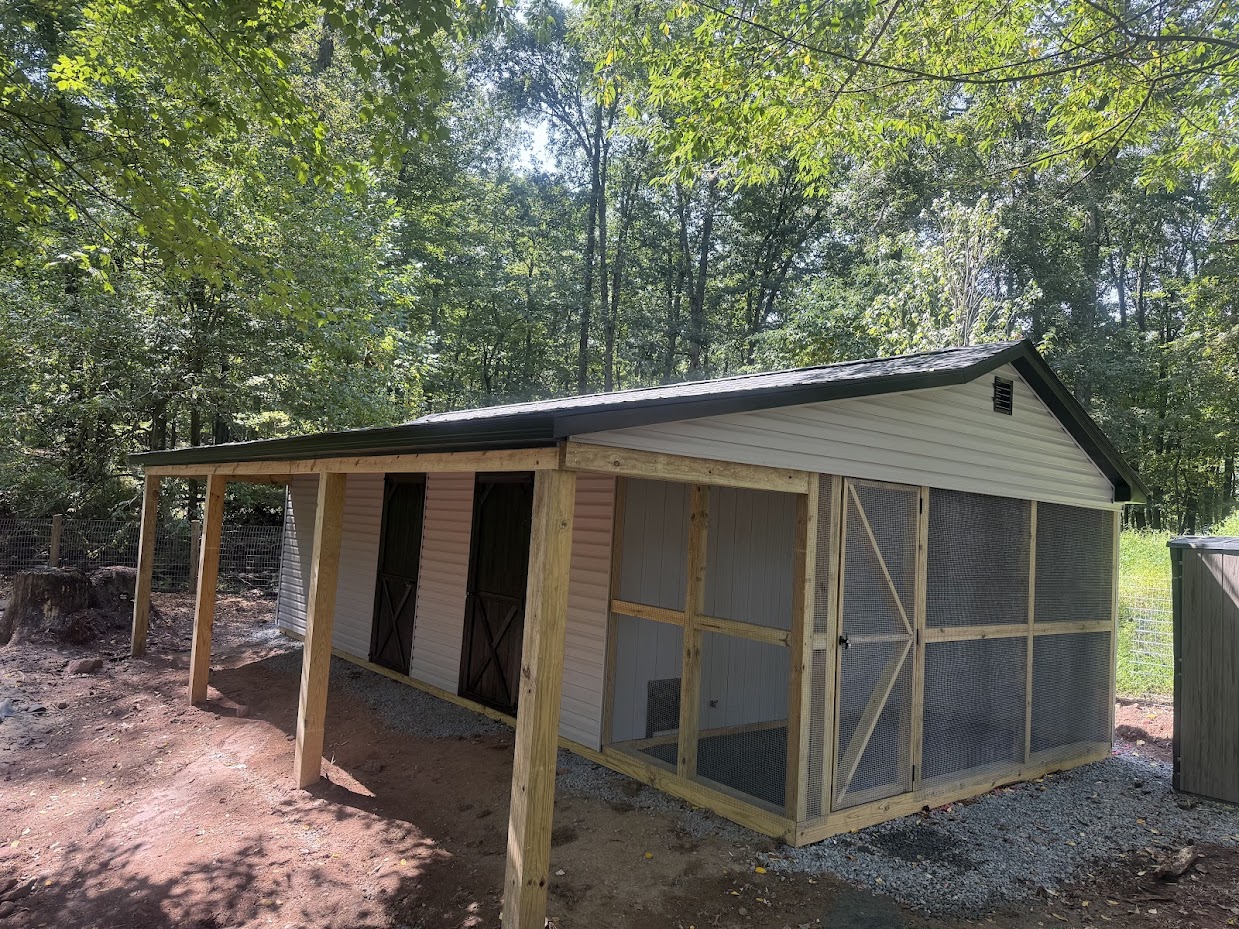 8×20 Custom Pheasant Shed w/ exterior run. featuring a 6×8 interior cabin w/ 3/4 PT floor, 8×14 exterior run, 1/2” Hardware cloth, LP painted siding, custom paint colors,
