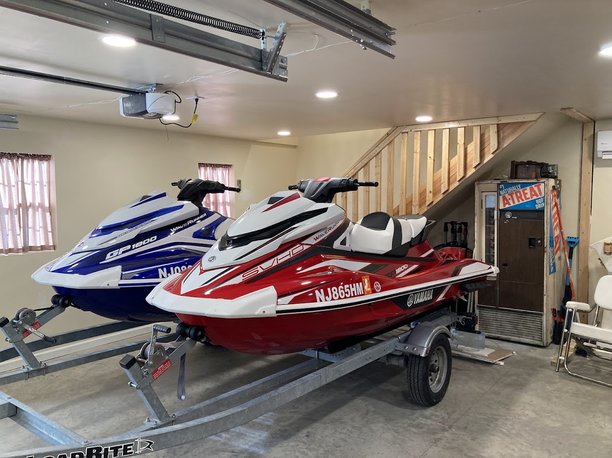 This garage was custom designed to house a truck in the 1 bay and a dirt bike shop in the adjoining garage with a certified beam to support a hoist.