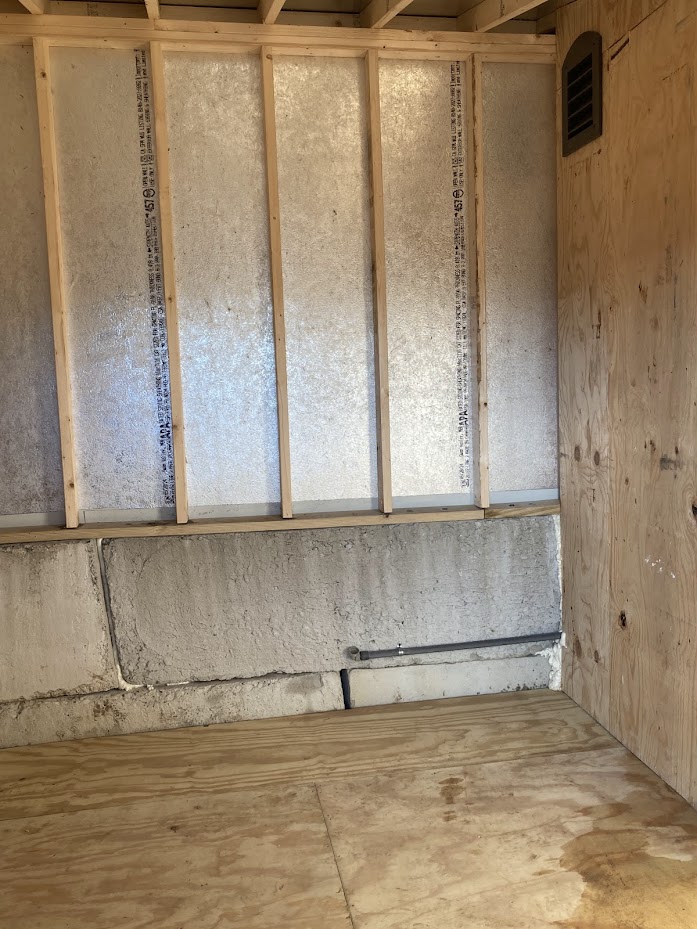 4×8 interior run with poly floor and fully insulated and paneled with easy clean vinyl Tex on the walls and ceiling.