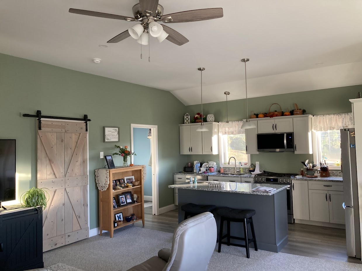 This 30×40 2 story garage was actually designed with a 1 bedroom AIRBNB on the 1st floor and a 2 bedroom 1 bath living quarters on the 2nd floor.